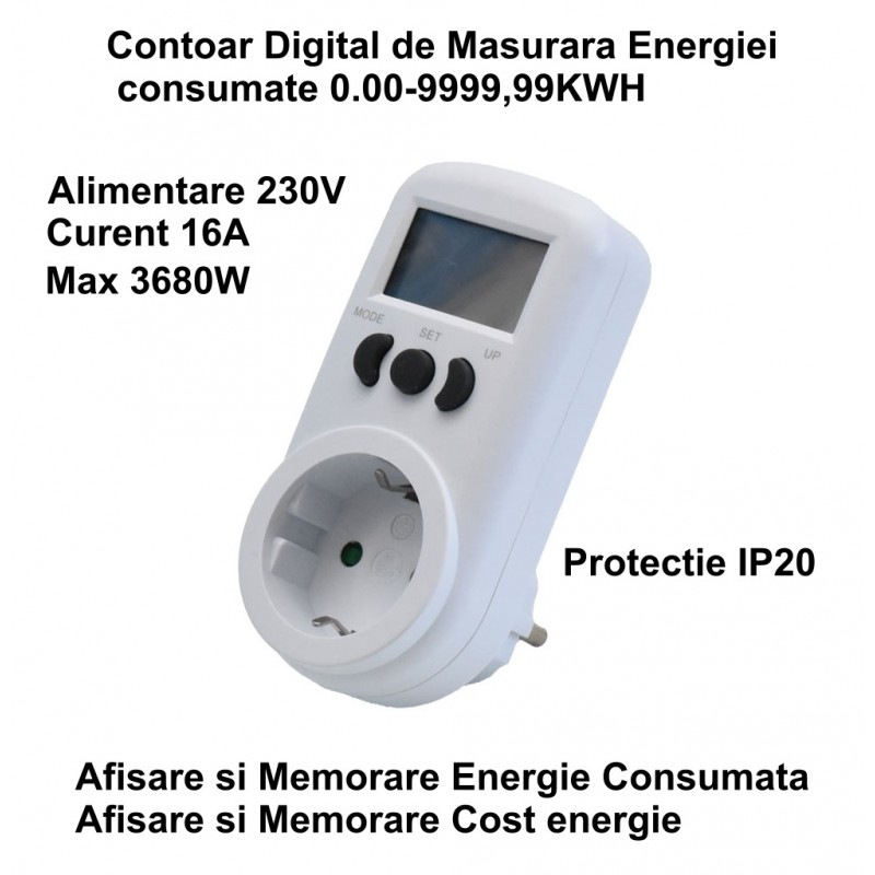 - Priza digitala cu contorizare a energiei electrice consumate de aparatul care este conectat prin ea.